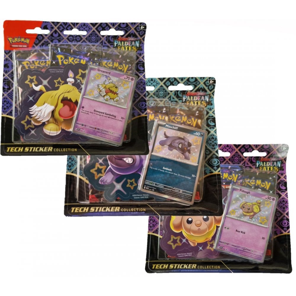 The Pokémon SV04.5 Paldean Fates Tech Sticker 3 Pack Blister contains: